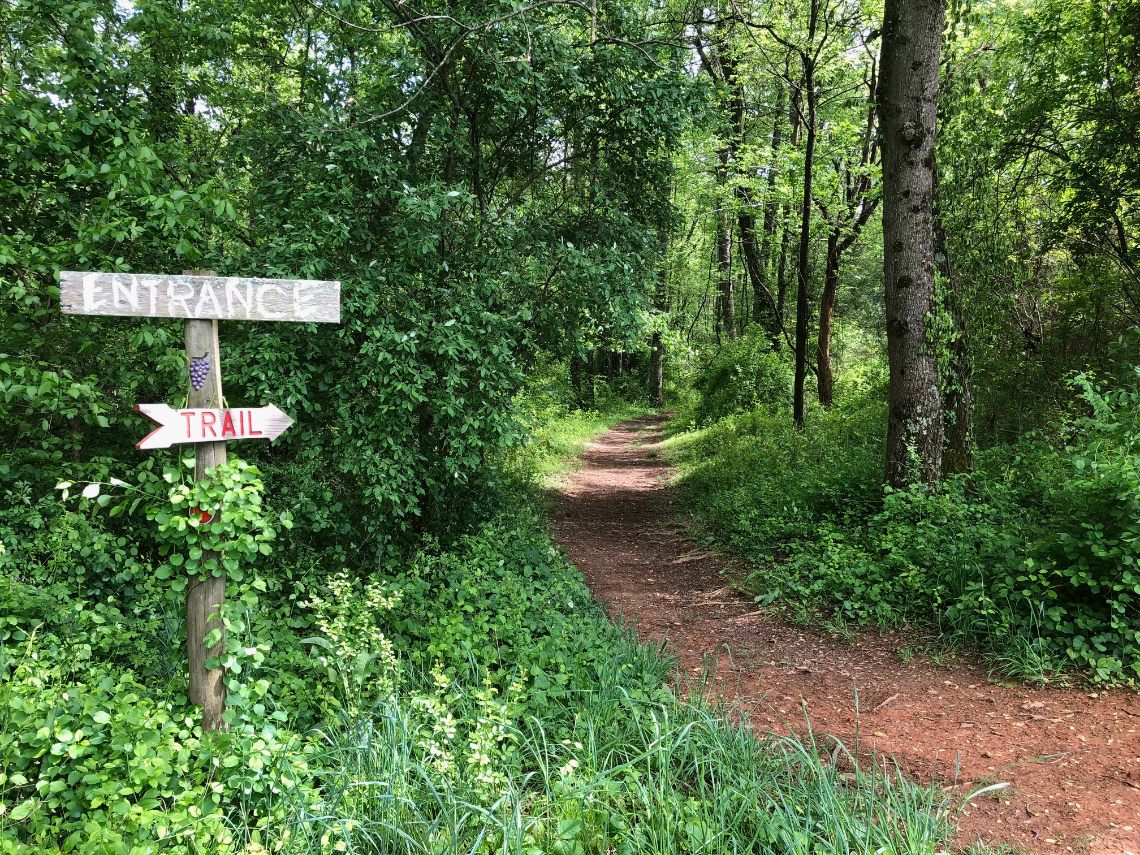 Importantly, the property provides direct access to the Mountains-to-Sea Trail, linking hikers from Clingman’s Dome in the Smoky Mountains to Jockey’s Ridge on the Outer Banks, along with a trail to Lake Klondike (just adjacent to Grassy Creek V&W) and the stunningly captivating mural on the dam wall face by acclaimed artist Eva Crawford. Grassy Creek also offers access to trails leading to other scenic destinations such as Carter Falls and also provides access to NC’s first ‘Forest Bathing’ Trail—the newest addition on Grassy Creek property by the Elkin Valley Trails group—all just perfect for attracting visitors and outdoor enthusiasts to Grassy Creek Vineyard & Winery.